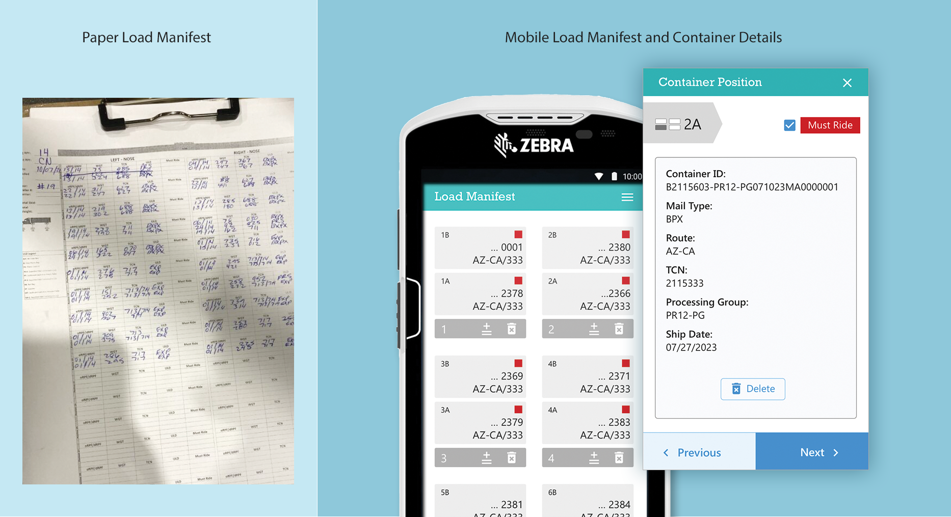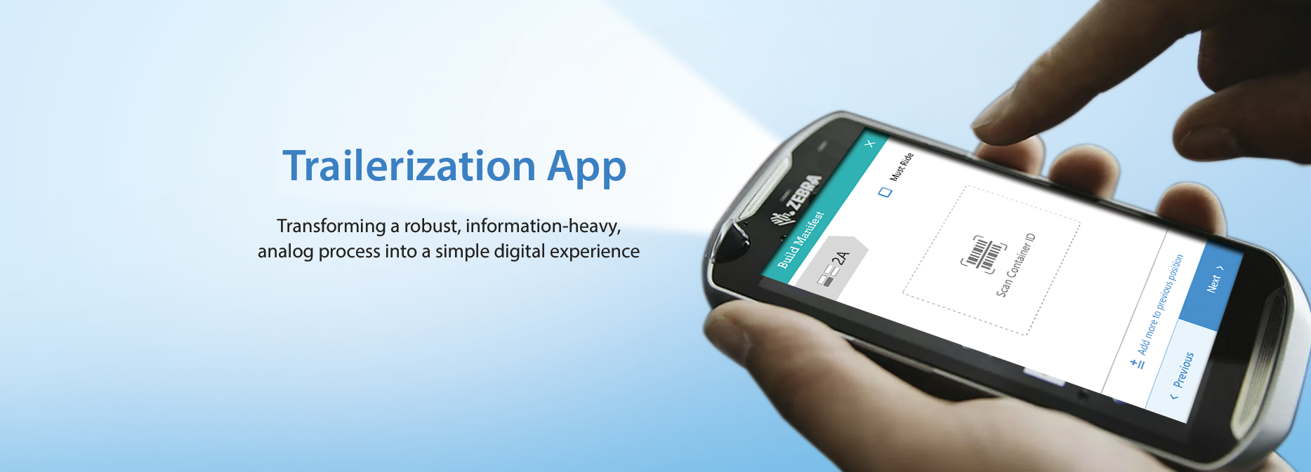 The following case study showcases the conceptualization and design of a process and interface for scanning containers to trailer position and creating an online Load Manifest. Accuracy and efficiency were achieved through: