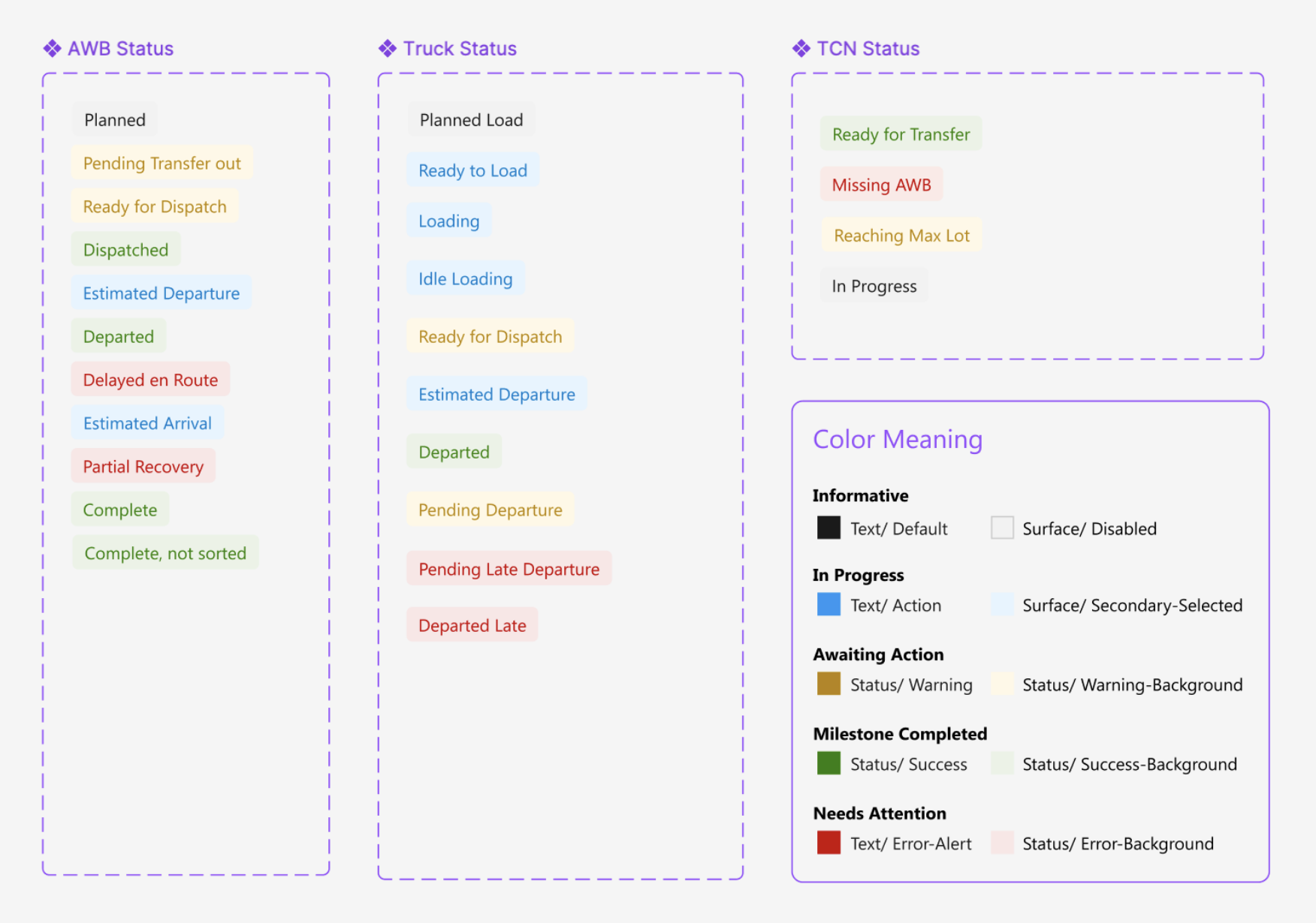 Standardize the status naming and color coding across the applications