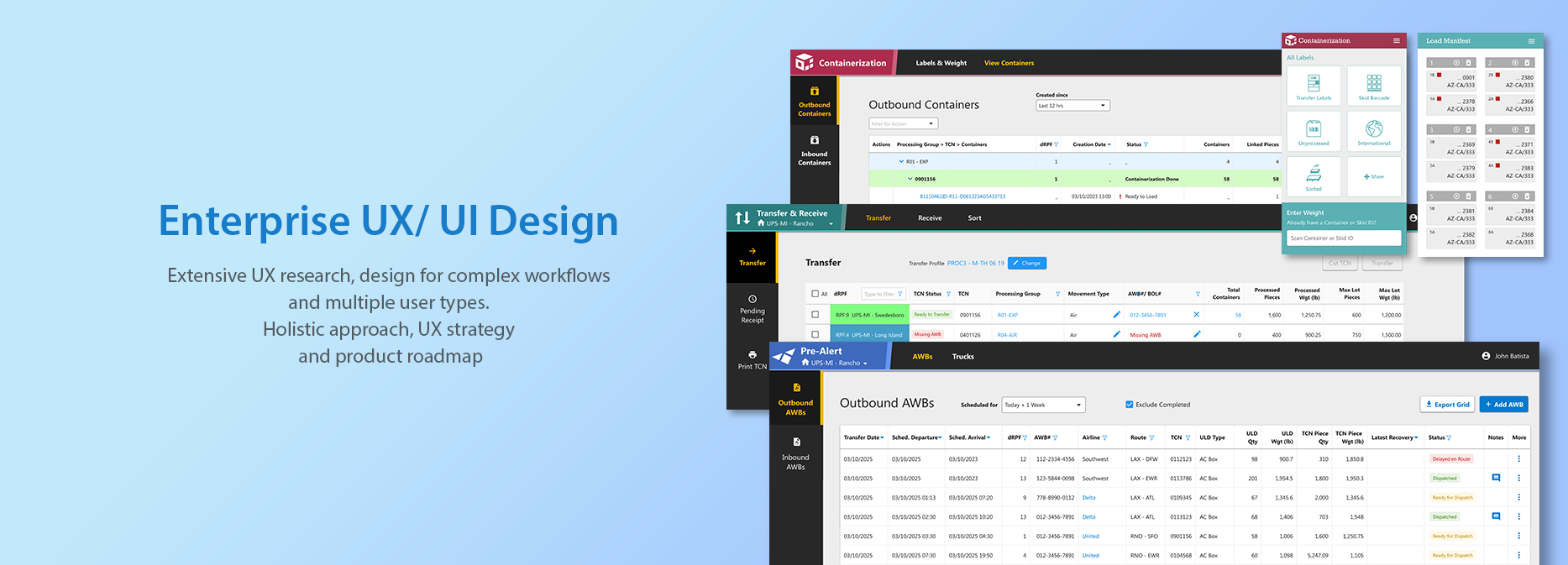 One of the goals of the modernization was to increase the users visibility into the mail in the UPS network. I worked with the business stakeholders to: